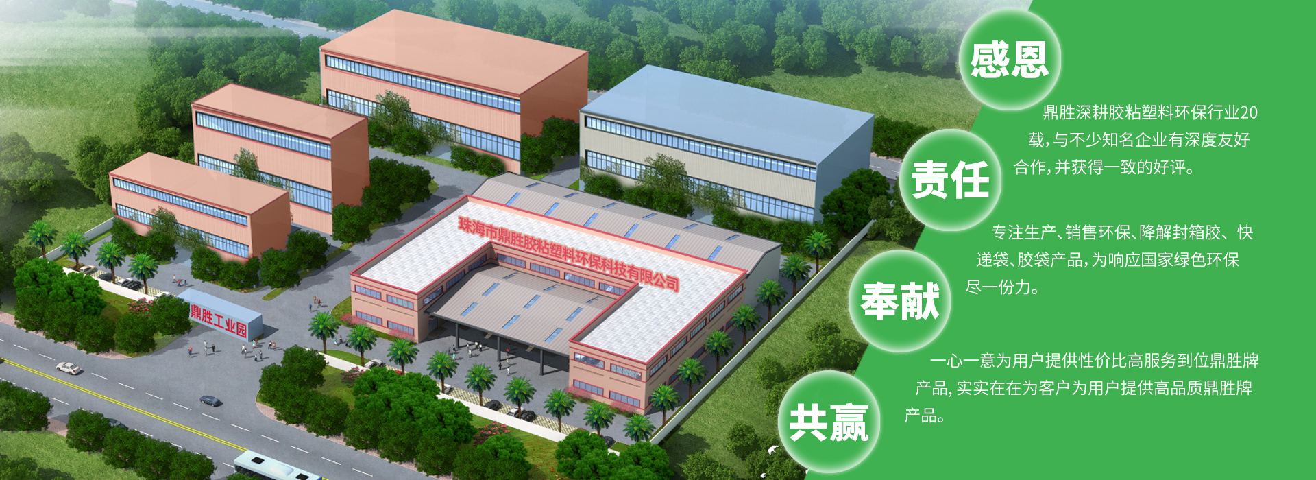 鼎勝是一家不斷創(chuàng)新發(fā)展的環(huán)保降解、膠袋、封箱膠企業(yè), 創(chuàng)始于廣東美麗珠海, 公司注冊資金1000萬, 花園式廠房超一萬平方米。
